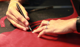 "Neue Entwicklungen, sich Kundenwünschen zu stellen, das reizt mich! Ich liebe Herausforderungen, die ich bewältigen darf!" Wir schauen Brigitte fragend an. "Herausforderungen, die ich bewältigen darf?" - viele Menschen sprechen in diesem Zusammenhang eher von "bewältigen muss". Aber bei ihr ist das anders. Für sie sind Aufträge auch eine Reise in ein Abenteuer. Und Abenteuer definieren sich über Neues, Überraschungen, über Können, Mut und Geistesgegenwart. Immer ein Jahr voraus - so ist das im Metier Mode. Wenn der Herbst eines Jahres beginnt, hat sie bereits die Herbstkollektion für das nächste Jahr entworfen. Auf Messen hat sich Brigitte informiert, welche Farben, Formen und Materialien die Modeschöpfer planen. Dann beginnt die Kreativphase, Nun gilt es, das, was Mailand, Paris und New York für die Oberbekleidung zeigen, für den eigenen Kundenstamm in tragfähige und kundengerechte Ideen und Modelle zu verwandeln. Das ist ein Strang ihres Business. Ein weiterer sind konkrete Aufträge. Zum Beispiel von Stockmayer + Sohn. "Sneakers" sollen es sein. Brigitte macht Vorschläge zu Farben und Ausführung.
