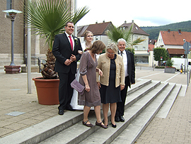 Das frischgebackene Ehepaar und seine Familien: Nur das Festpaar weiß, wo es stehen soll, die Mütter diskutieren noch - eine kleine Übung für die Zukunft?