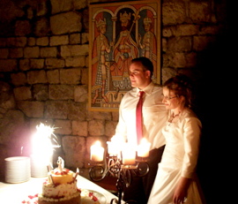 Nach einer kleinen Rundreise über die schwäbische Alb erreichte das frisch vermählte Ehepaar mit Trauzeugen, Eltern und Freunden die Stauferburg Katzenstein. Ein rauschendes Fest - das ist am Tag nachher klar - nahm seinen fabelhaften Lauf. Alte Freunde, neue Freunde, Familie - eine bunte Mischung fröhlicher Menschen, voll Unterschiede, Kontraste, voll positiver Spannung - wie bei einem tollen Musikstück - waren versammelt, um ihre Freunde beim Beginn ihrer Ehe zu feiern.
