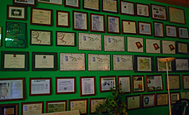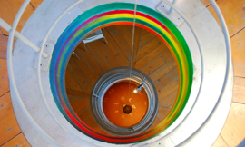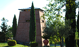 Wie persönlich geprägt das Ganze ist, zeigt sich ausdrucksvoll im Inneren des Turms. Ein Weinkeller der besonderen Art. Seine Konstruktion schafft durch raffinierte Luftführung ein natürliches Lagerklima. Der Architekt Augusto Romano Burelli war strikt. "Wer Wein macht, muss sich mit der Erde verbinden!", und schuf ein Foucaultsches Pendel, das durch Tierkreis und Jahreslauf schwebt, umgeben von vielen großbauchigen Holzfässern voll Wein.