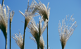 Voll Farb- und Formverführungen ringsherum. Die Fotosafari reizte. Aber der Schreibtisch schrie. Und er gewann. Obwohl ich dann im Schatten saß. Wegen des Bildschirms. Aber heute kein Problem. Die helle Frühlingssonne hatte sich in meinem Kopf festgesetzt. Und leuchtete weiter, immer weiter. Die Sätze sprengten die feste Hülle wie bei der Kamelienblüte. Und die Zeichen sprühten aufs Papier wie die Blütenbüschel des Schilfgrases in den blauen Himmel.