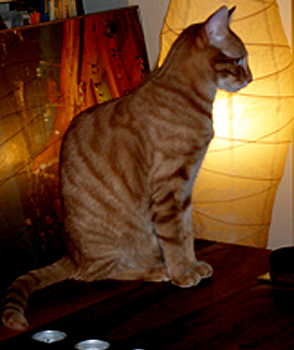 Bei einem Besuch bei Helen tobten ihre Teenagerkatzen wie wild in meinem Bett herum. Aber sie konnten auch anders. Wie ein Chamäleon passten sie ihre Formen der Umgebung an. Elegant wie die kleine Pendüle auf dem Bord setzte die eine ihr Profil ins Maß der Lampe. Sogar die Farben stammten aus dem gleichen Spektrum. Ganz zu schweigen von den ähnlichen Linien. Hatte sie doch Nasenspitze und Beinansatz kunstvoll in die Lampenverstärkungskurven eingebracht. Und die Fellmusterlinien so perfekt an den Schirm gesetzt, dass jedem Maßschneider die Augen vor Glück tränen.