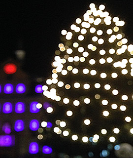 Aber das war nicht alles, was an diesem Tag geschah. Ein Termin, zu dem mich meine Redaktion immer wieder schickt, ist ein ganz besonderer Akt. Unterm prachtvollen Gmünder Tannenbaum, weihnachtlich reich mit Lichtern geschmückt, vor dem zum Adventskalender mutierten Rathaus, sammeln sich Bürgerinnen und Bürger von Gmünd und lauschen dem Gesang der St. Michael Chorknaben. In diesem Jahr, in ihrem 60er Jubeljahr, traten sie gemeinsam mit den ehemaligen Chorknaben, heute "Cantate Domino", auf. Eine schöne Choreographie. Die weiß gewandeten "Knaben" standen vor den ehrwürdigen schwarz bekleideten Älteren und schwangen immer wieder - wie Engelsflügel - mittig geteilt zur Seite, wenn die "Alten" sangen.